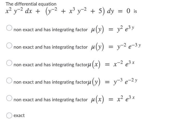 Solved The Differential Equation X Y 2 Dx Y 2 X3 Y 2 Chegg Com